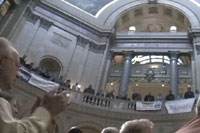 | Episode 15: Transportation Funding Rally This show documents a transportation funding rally at the Minnesota State Capitol on April 6, 2005. It has a few clips from the speeches and some interviews with transit users. The show also features an on-bus interview with suburban transit user John Dillery. I ran into him on the bus back to downtown Minneapolis after the rally, and he was gracious enough to consent to a Talking Transit interview. To find out contact information so you can let your representatives in the Minnesota State Capitol how important transit funding it, visit: Back to On Transit home Visit Sloppy Films Visit A Carfree Home Page Visit Transit for Livable Communities Visit Metro Transit |