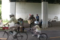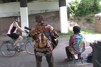 | Episode 19: Midtown Greenway Phase II Opening This episode is 60% devoted to bicycle transportation, and features the grand opening celebration of the second phase of the Midtown Greenway. This celebration took place in June 05, and opened the section of the Greenway from 5th Avenue South to Hiawatha Avenue, tying the Greenway into the Hiawatha Line train. I tape the ceremonies and then rode up and down the greenway. There was music under some of the bridges, and information tables and other activities along the route. I had some audio problems with my camera, and did not get audio of some of the many music performances along the route. The last segment of the show is another bicycle event. This segment is just a quick glance in to the Bike In, an event carried out by the Bell Museum and Minnesota Film Arts. Bicyclists got a discount to this open air music show and outside film performances. The middle of the show is devoted to a bus interview with community organizer Val Barnes, who I ran into on the bus and asked her to tell me some of her thoughts on transit. Back to On Transit home Visit Sloppy Films Visit A Carfree Home Page Visit Transit for Livable Communities Visit Metro Transit |